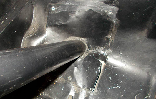 Arrière Création du réservoir et emplacement pompe. Création du support à parachute.
