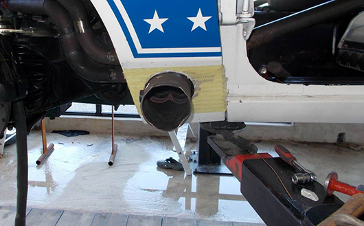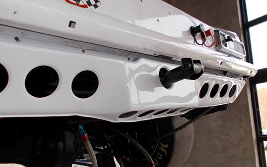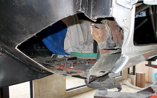 Dessous Mise en place d'une nouvelle suspension. Nouveau catch Pan. Modification de la jupe avant.